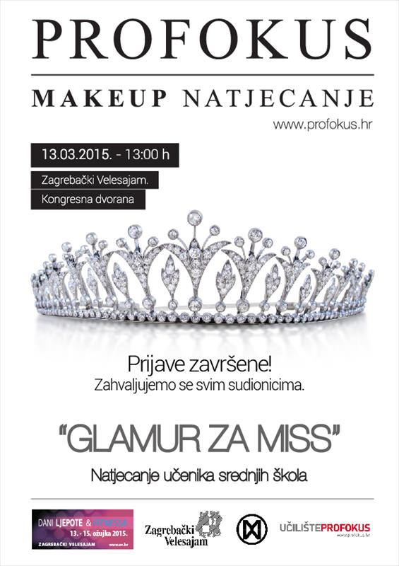 Tema ovogodišnjeg make up natjecanja je " Glamur za Miss" . Strogu propoziciju i zahtjevne elemente make-up-a što se za glamur izgled i očekuje, postavio je stručni tim Učilišta Profokus kao i žiri koji će ocjenjivati i vrednovati svaki potez natjecateljica.
